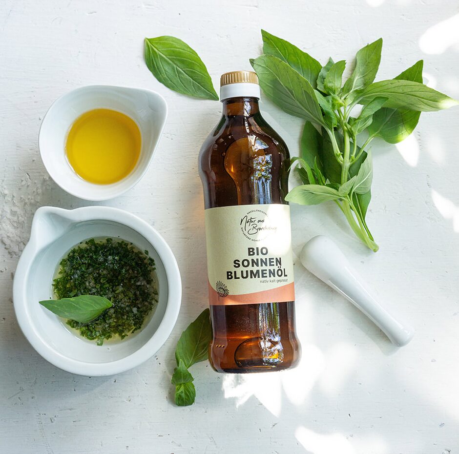 Unser hochwertiges Bio-Sonnenblumenöl ist bis 120°C erhitzbar und deshalb ideal für die warme und kalte Küche. Es ist angenehm mild und fruchtig im Geschmack.