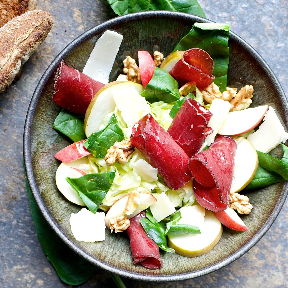 La nostra carne secca a basso contenuto di colesterolo e ricca di nutrienti ricavata dal manzo Highland. Aggiunge un tocco speciale a un fresco piatto di insalata.
