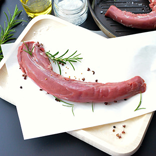 Filetto di maiale Il filetto succulento e gustoso dei nostri maiali di razza Mangalica assicura un piacere incomparabile. La carne tenera e magra è tra le più pregiate del maiale.