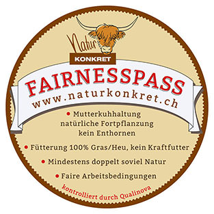 Il manzo scozzese proviene dal Ticino e dal canton Turgovia. I nostri animali sono nutriti esclusivamente con erba, fieno e acqua.