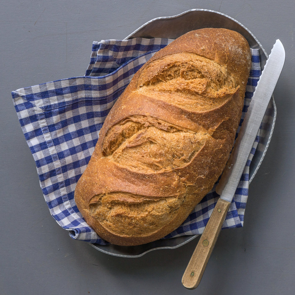 Farina bigia di frumento, acqua, farina bianca di frumento, sale marino, lievito