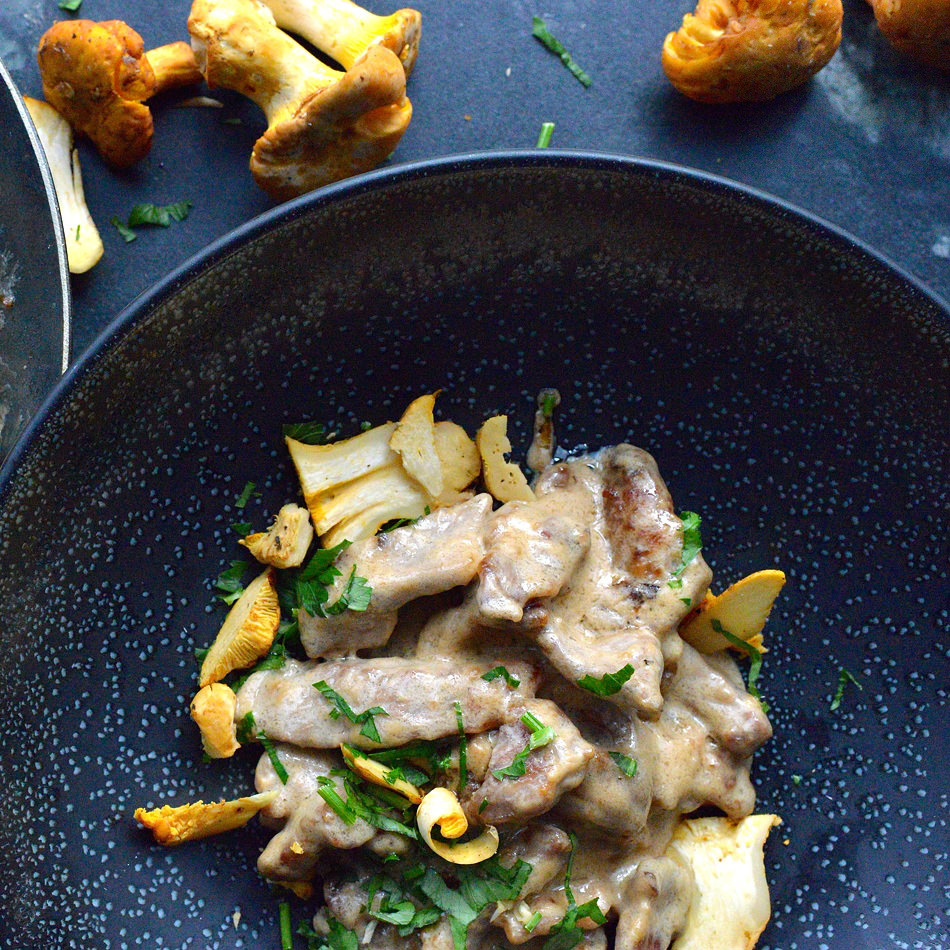 Fleisch mit Gewürzen und Mehl mischen. Portionenweise in Bratbutter anbraten, herausnehmen und beiseite stellen. Sauce: Zwiebel, Knoblauch und Gemüse in Bratbutter andünsten. Dann mit Wein und/oder Bouillon ablöschen. Saucenhalbrahm und Fleisch dazugeben, aufkochen. Zugedeckt 10 Minuten köcheln. Kräuter und Senf beifügen. Auf vorgewärmten Tellern anrichten, garnieren. Tipp: Als Beilage empfehlen wir eine unserer köstlichen Teigwarensorte.