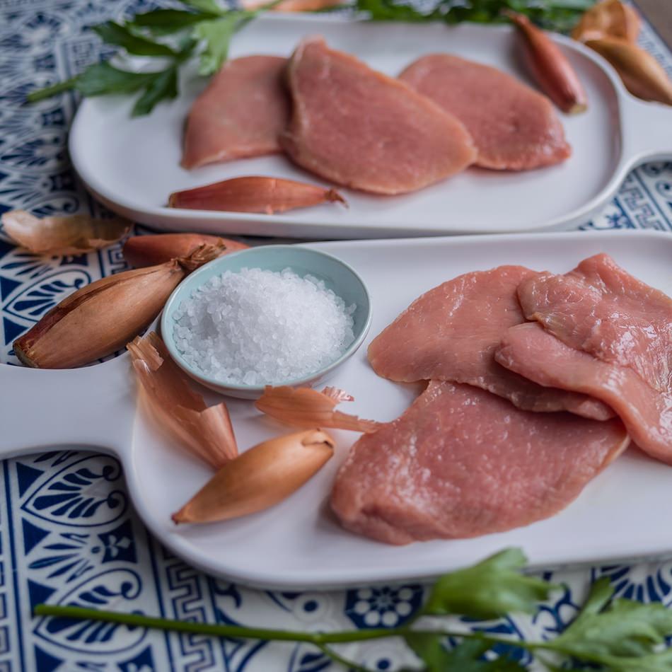 La gustosa carne di Vitellone ha un colore rosso chiaro. È leggermente più scuro della carne di vitello convenzionale. Questo ha a che fare con l'alimentazione. È composto da latte alpino e foraggio grezzo. Grazie al latte fresco, la carne ha una fine marmorizzazione di grasso, che la rende estremamente tenera e aromatica. I vitelli Vitellone vengono macellati un po' più tardi dei vitelli convenzionali, cioè dopo 6-8 mesi.