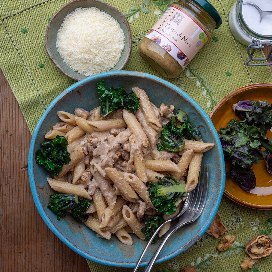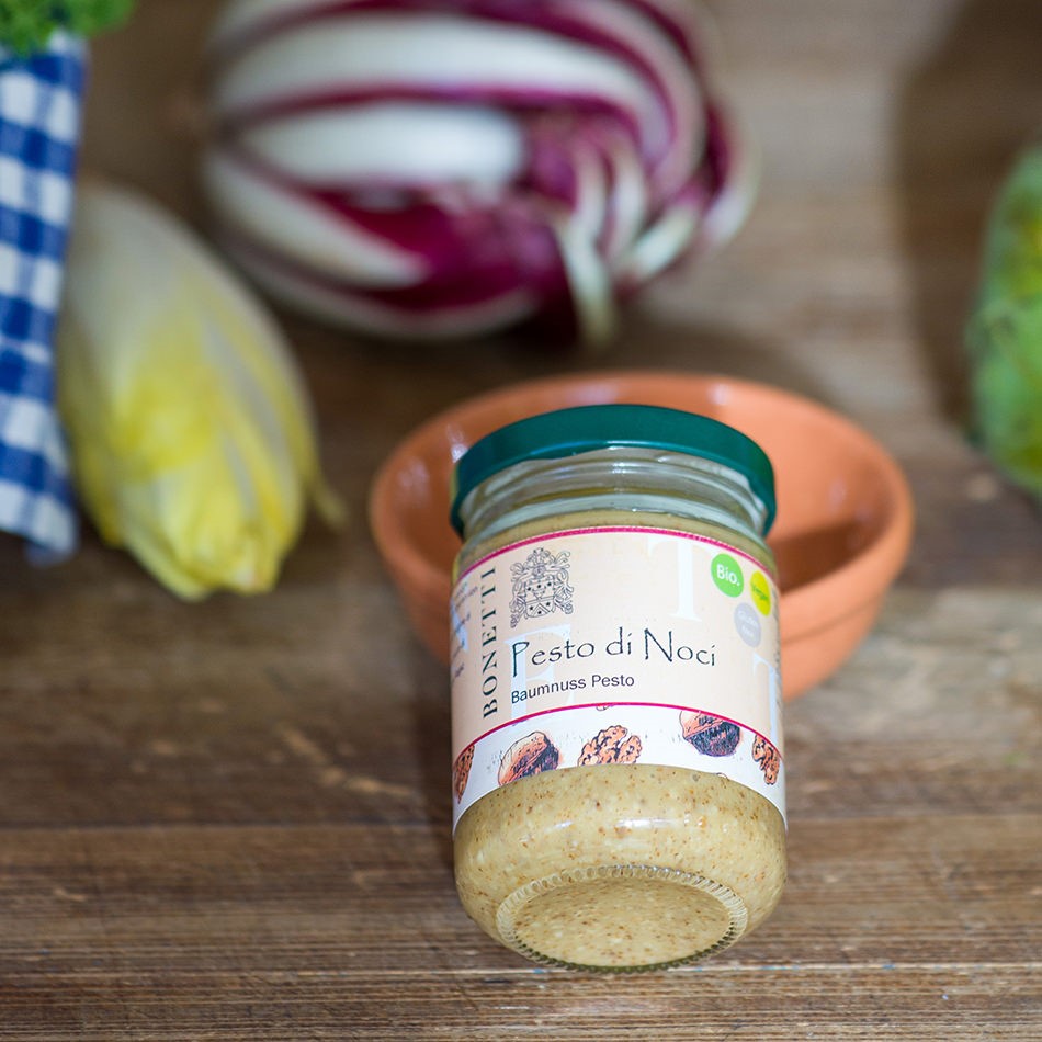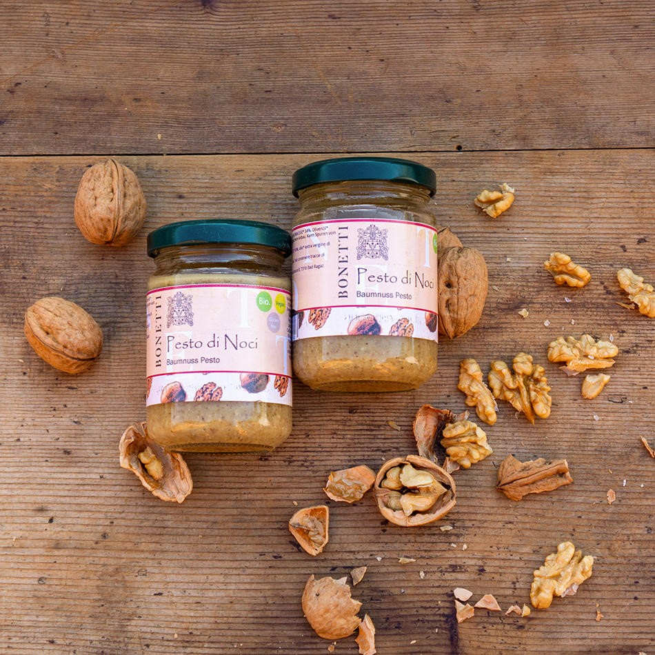 Dieses Baumnuss-Pesto passt hervorragend zu Teigwaren, Fleisch und Gemüse. Auch als Aufstrich für Crostini, zu Käse und in der Salatsauce ein Genuss.