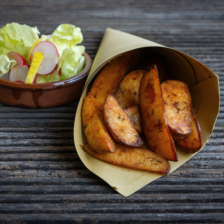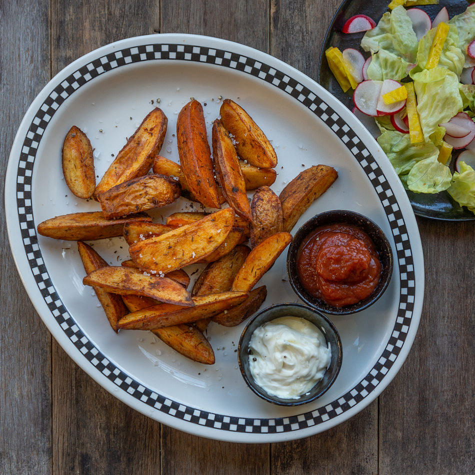 Knusprig & Lecker: Unsere Country Fries sind perfekt gewürzt! Und mit den köstlichsten Bio Kartoffeln aus unserem eigenen Anbau bieten Sie ein unvergessliches Geschmackserlebnis. Sie sind die ideale Beilage oder der perfekte Snack.