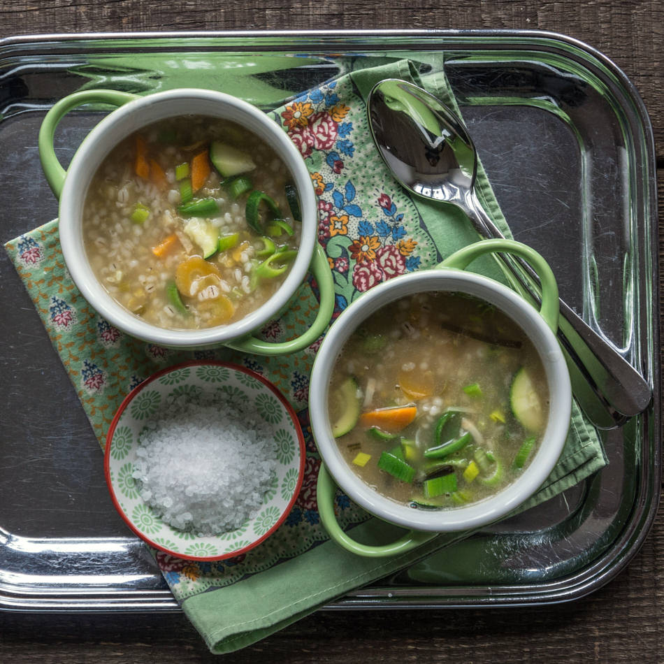 Gerstensuppe in 1.5 l kochender Gemüsebrühe einrühren. Bei mittlerer Hitze köcheln lassen, immer wieder die Suppe umrühren. Nach ca. 40 Min. Kochzeit mit Suppengrün und kleinen Butterflocken servieren. Nach Belieben mit Salsizscheiben garnieren. Dazu passt hervorragend ein Stück Alpkäse mit Brot.