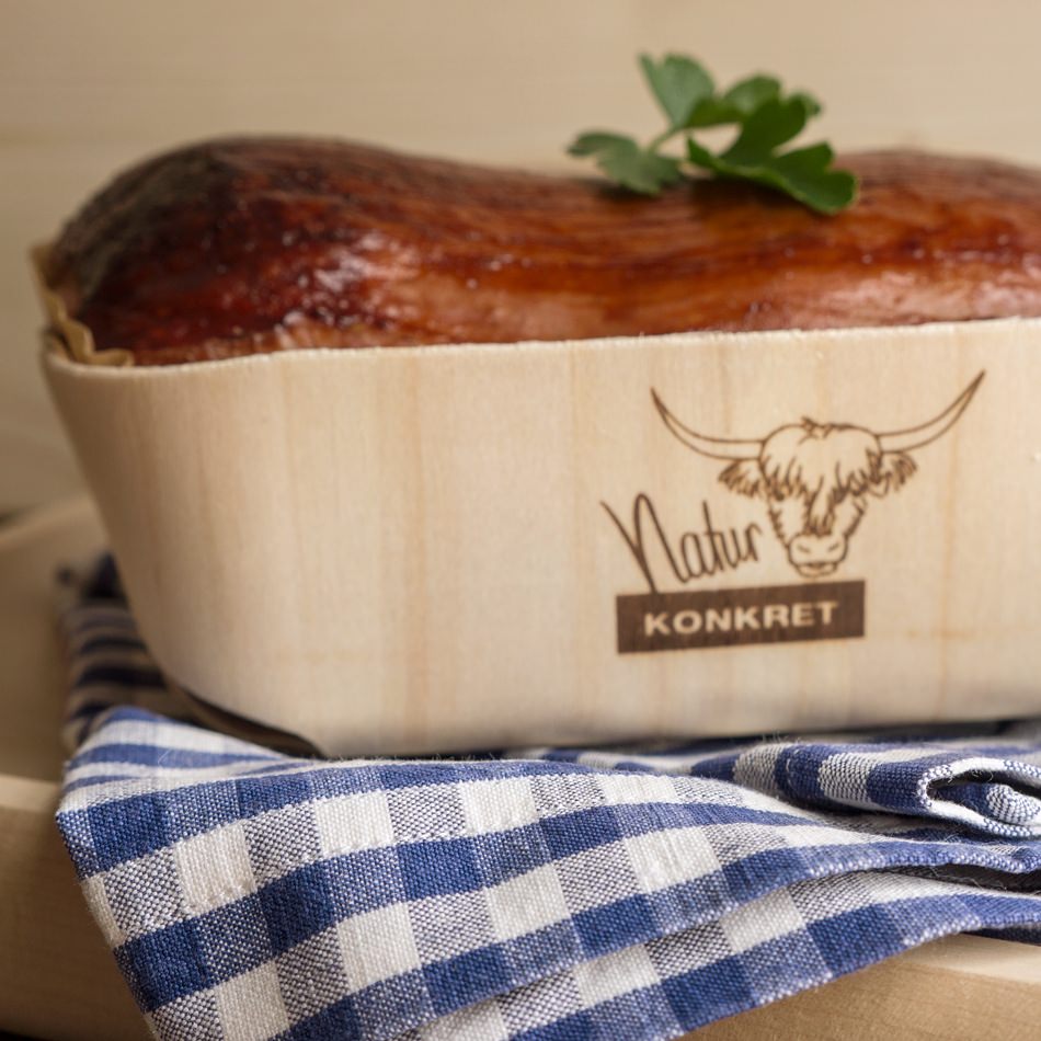 Im Fleischkäse sucht man den Käse vergeblich. Aber wir wagen zu behaupten, dass geschmacklich unser Fleischkäse unschlagbar ist. Der Fleischkäse verdankt seinen Namen seiner rechteckigen Form. Fleischkäse in den Ofen schieben – und fertig ist der Hochgenuss mit unzähligen Kombinationsmöglichkeiten.