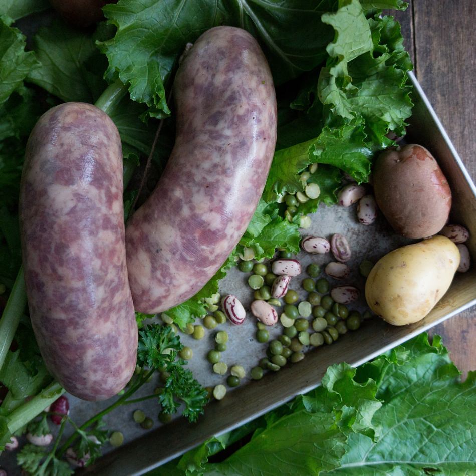 Fleisch vom Wollschwein, Speck vom Wollschwein Salz, Pfeffer, Muskatnuss, Zimt, natürlicher Zusatzstoff