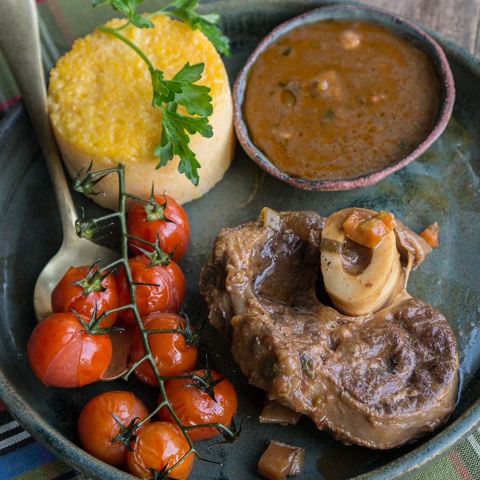 Ossobuco ist ein klassisches italienisches Schmorgericht. «Osso» heisst Knochen, «buco» bedeutet Loch. Unser vorgekochtes Angus Ossobuco ist mit sorgfältig ausgewählten Bio-Zutaten verfeinert, schnell zubereitet und wird Sie begeistern. Dazu passt hervorragend ein Risotto oder eine Polenta. Qualitativ hochwertige Produkte dazu finden Sie ebenfalls in unserem Shop.