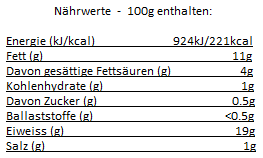 Fleisch vom Hochlandrind, Fleisch vom Wollschwein, Alpensalz, Pfeffer, Kümmel, Paniermehl, Sbrinz, Eier, Peterli.