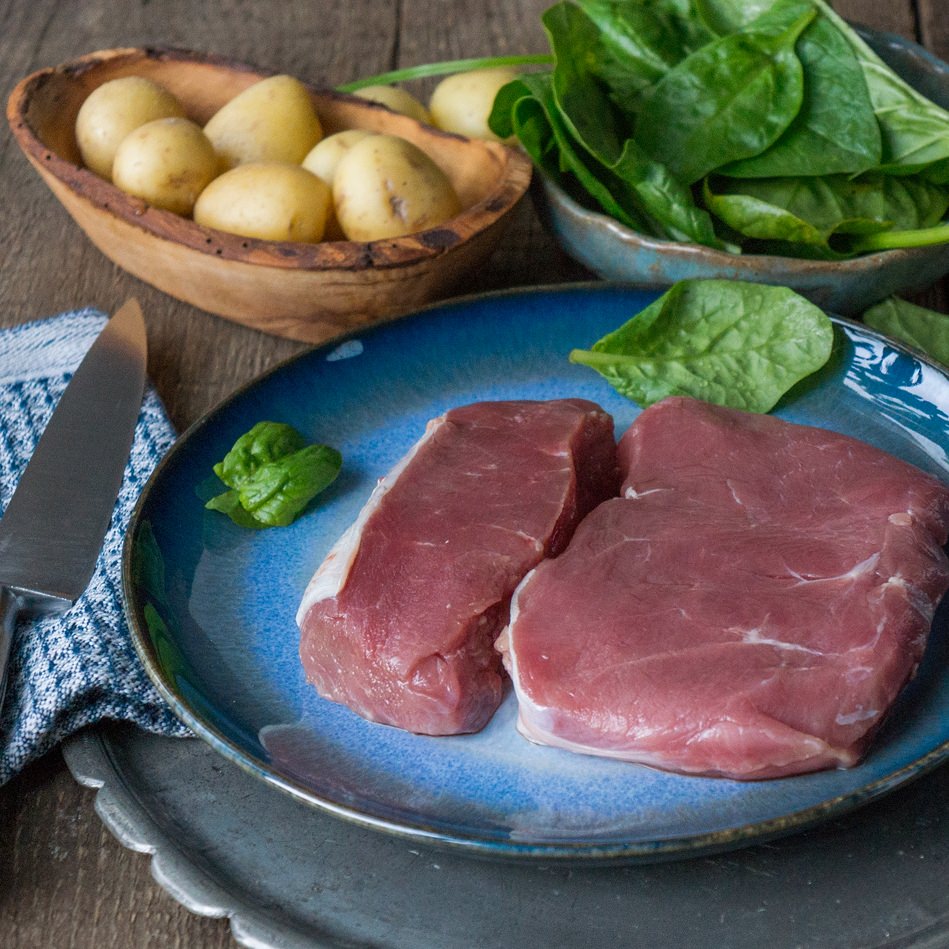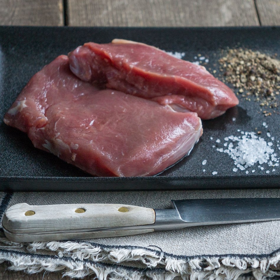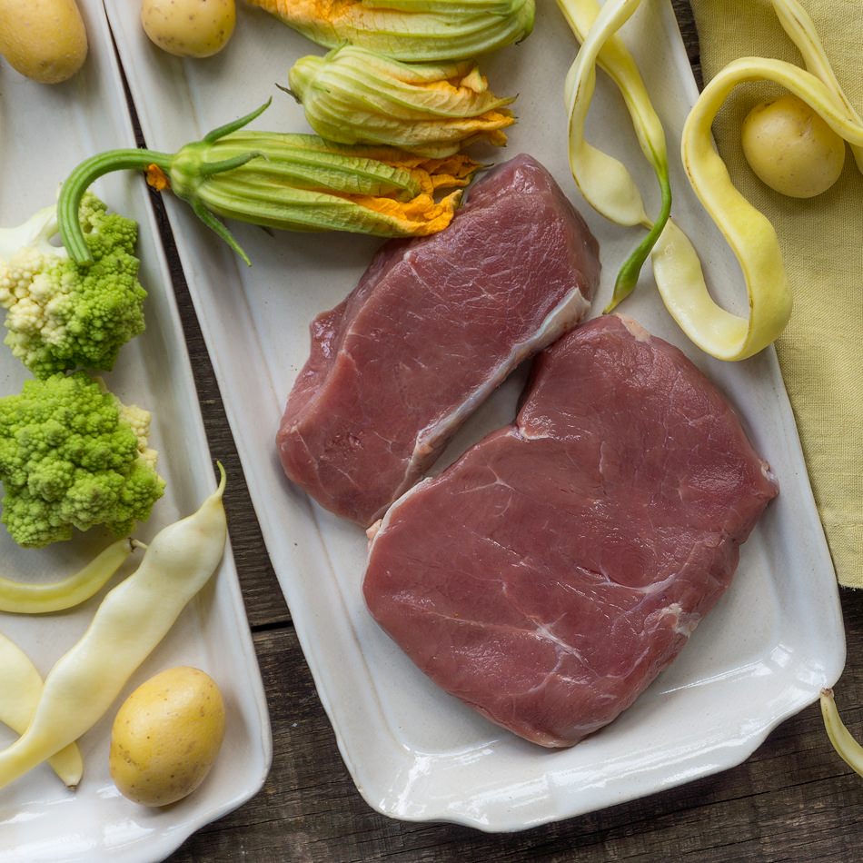 Die natürliche und bedürfnisorientierte Fütterung unserer Tiere verleiht dem Fleisch eine rosa bis leicht rötliche Farbe. Kalbfleisch zählt ganz klar zu den feinsten Fleischsorten, das besonders mager, saftig und zart ist. Aufgrund seines niedrigen Fettgehaltes ist das Kalbfleisch gut verdaulich. Gleichzeitig enthält es viele Mineralstoffe und hat einen relativ hohen Eisenanteil.
